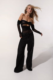 The gathered fabric at the top and sleeves adds texture and depth to this exquisite piece. This detail not only enhances visual interest but also provides comfort as it moves with it. The bodysuit gently incorporates the body all the way up to the sleeves.