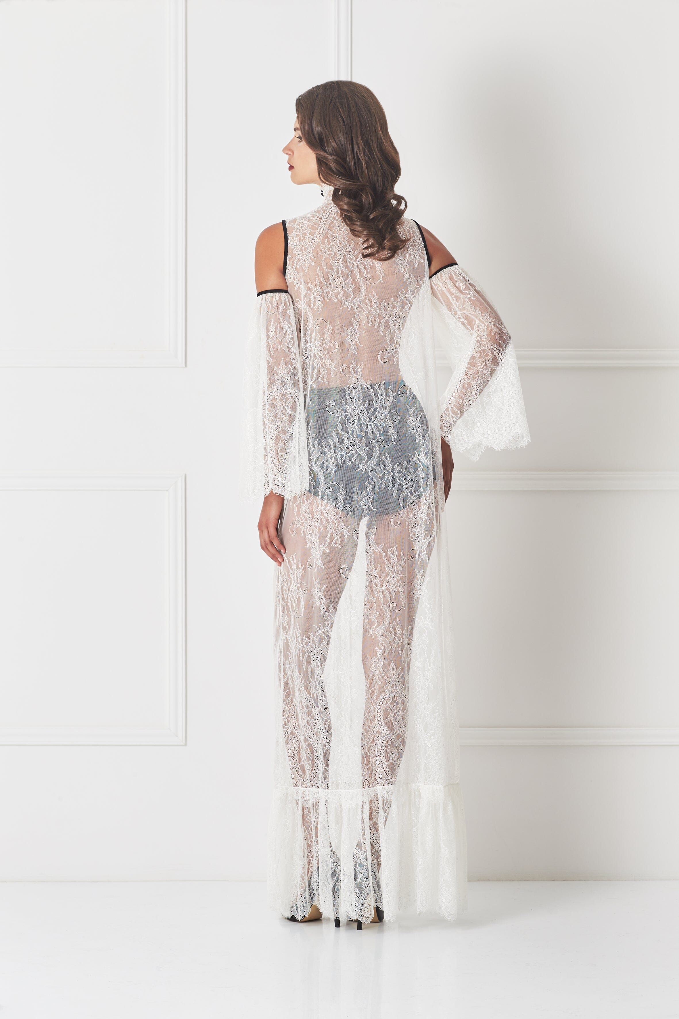 Embrace delicate femininity with the Exquisite Lace Dress, crafted from nylon white lace in a transparent design. The intricate lace detailing creates a soft, romantic look while adding an air of elegance and mystery.