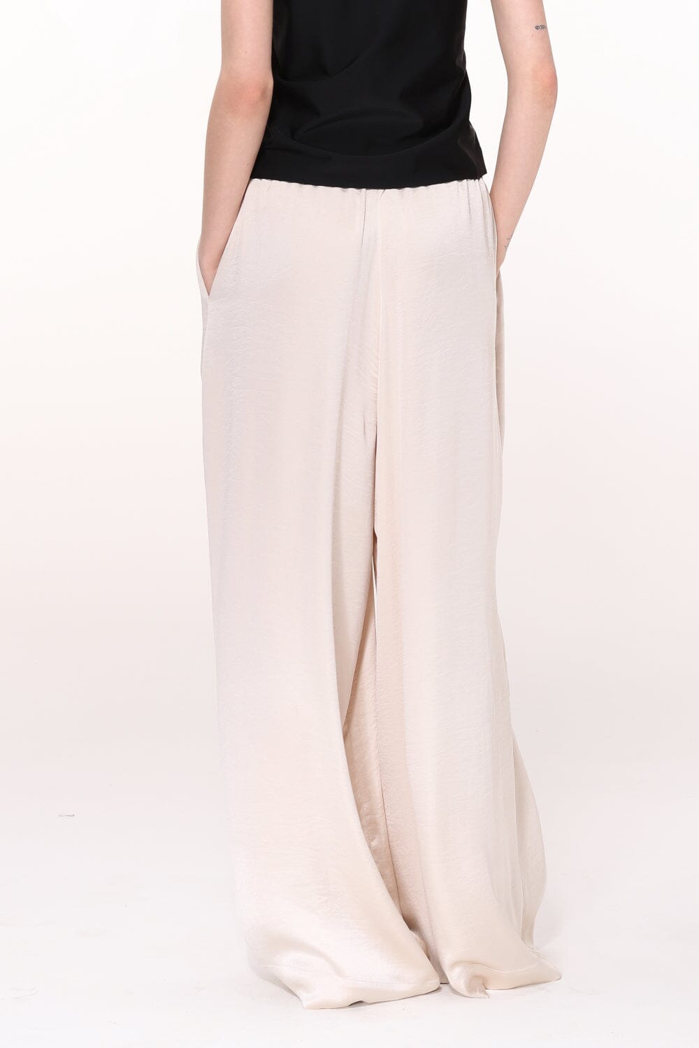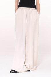 These classic cream pants are made from a lightweight, breathable fabric, designed to keep you comfortable all day. The pants feature side pockets and a wide, easygoing cut. The elastic waistband ensures a perfect fit for all body types. These pants are the perfect choice for creating a laid-back yet polished look, ideal for everyday wear or a more refined occasion.