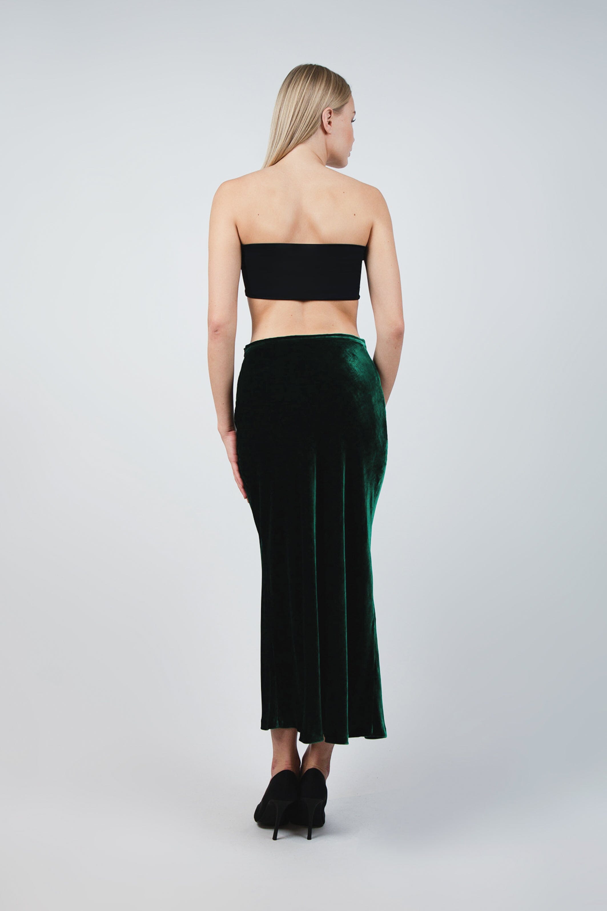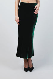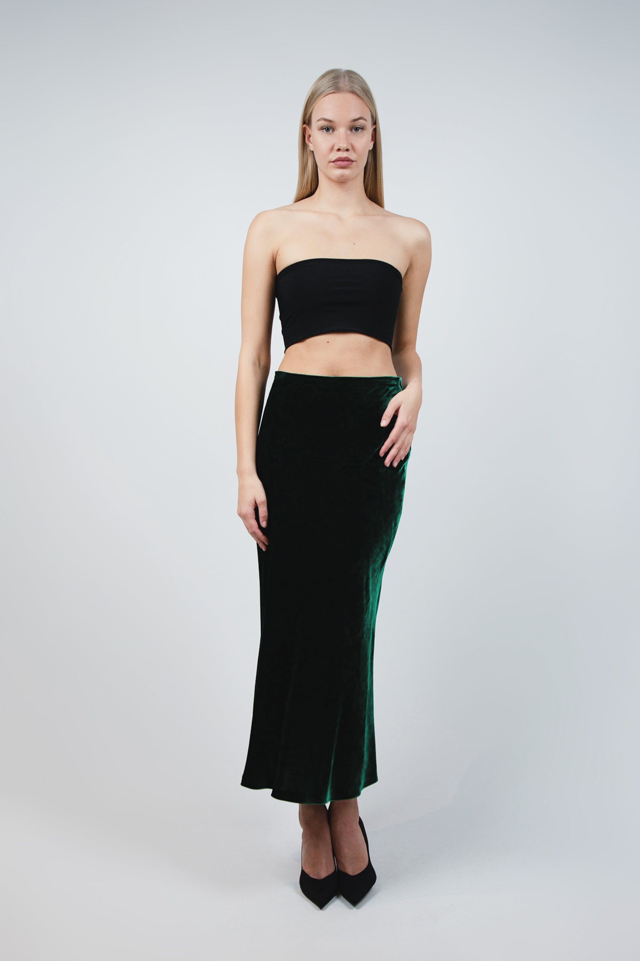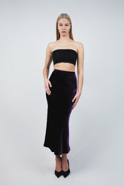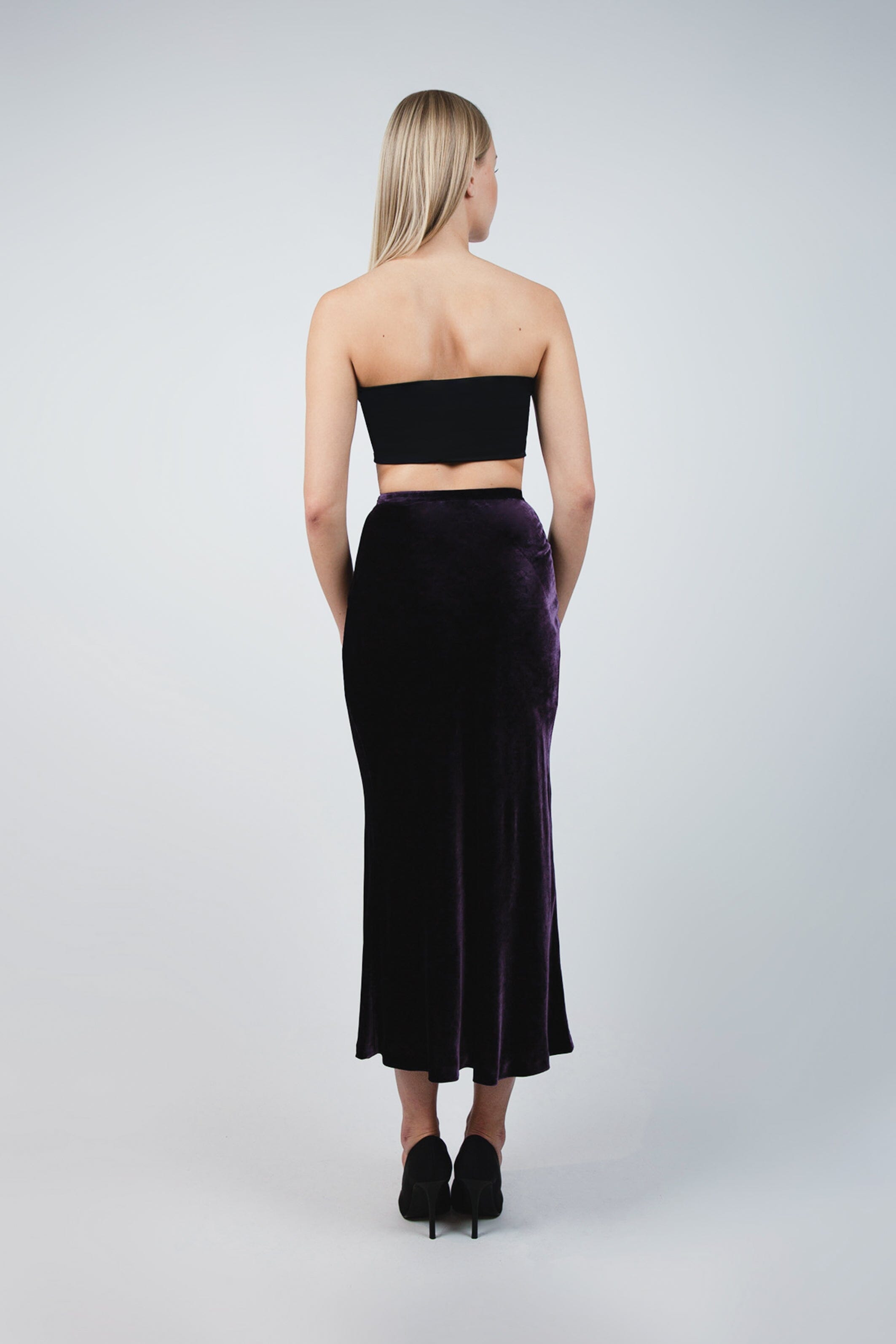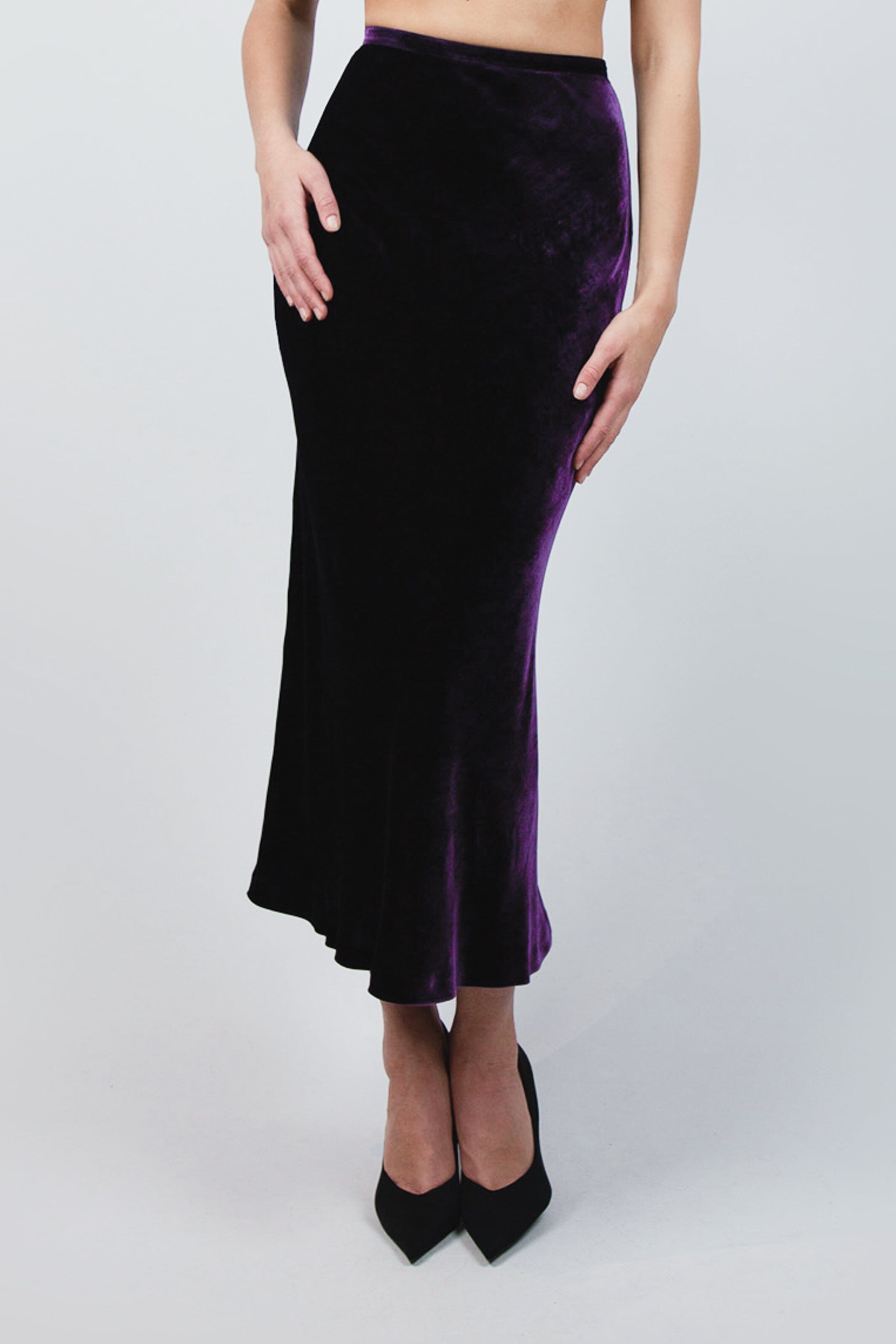 Midi-length Velvet-Silk skirt for your holiday wardrobe. Amazing fit for layering or wearing with other Amoralle statement pieces.