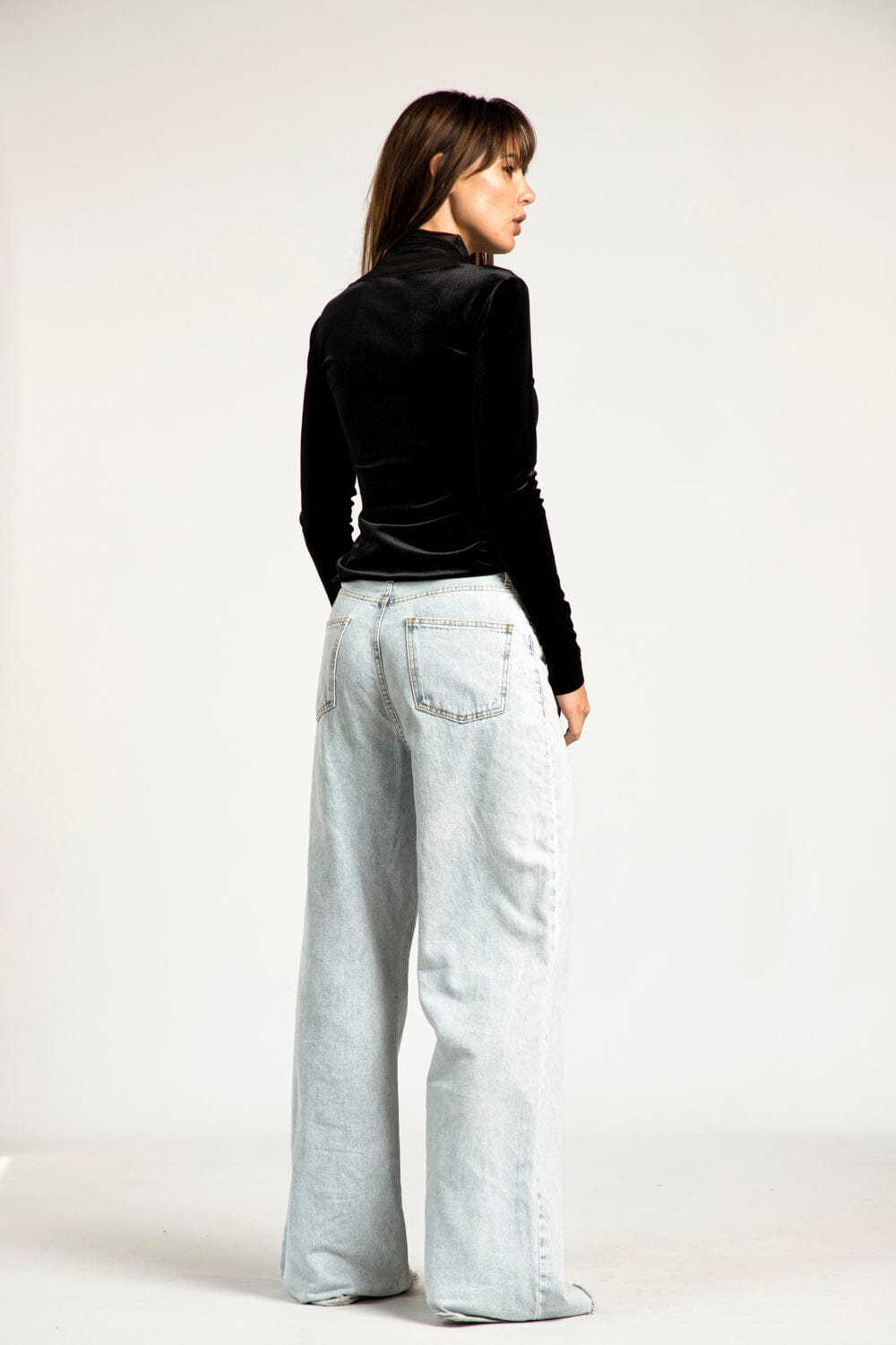 Delicately crafted full length top from exclusive velvet, with mesh square-neckline and turtleneck. This Top beautifully underlines the feminine silhouette.