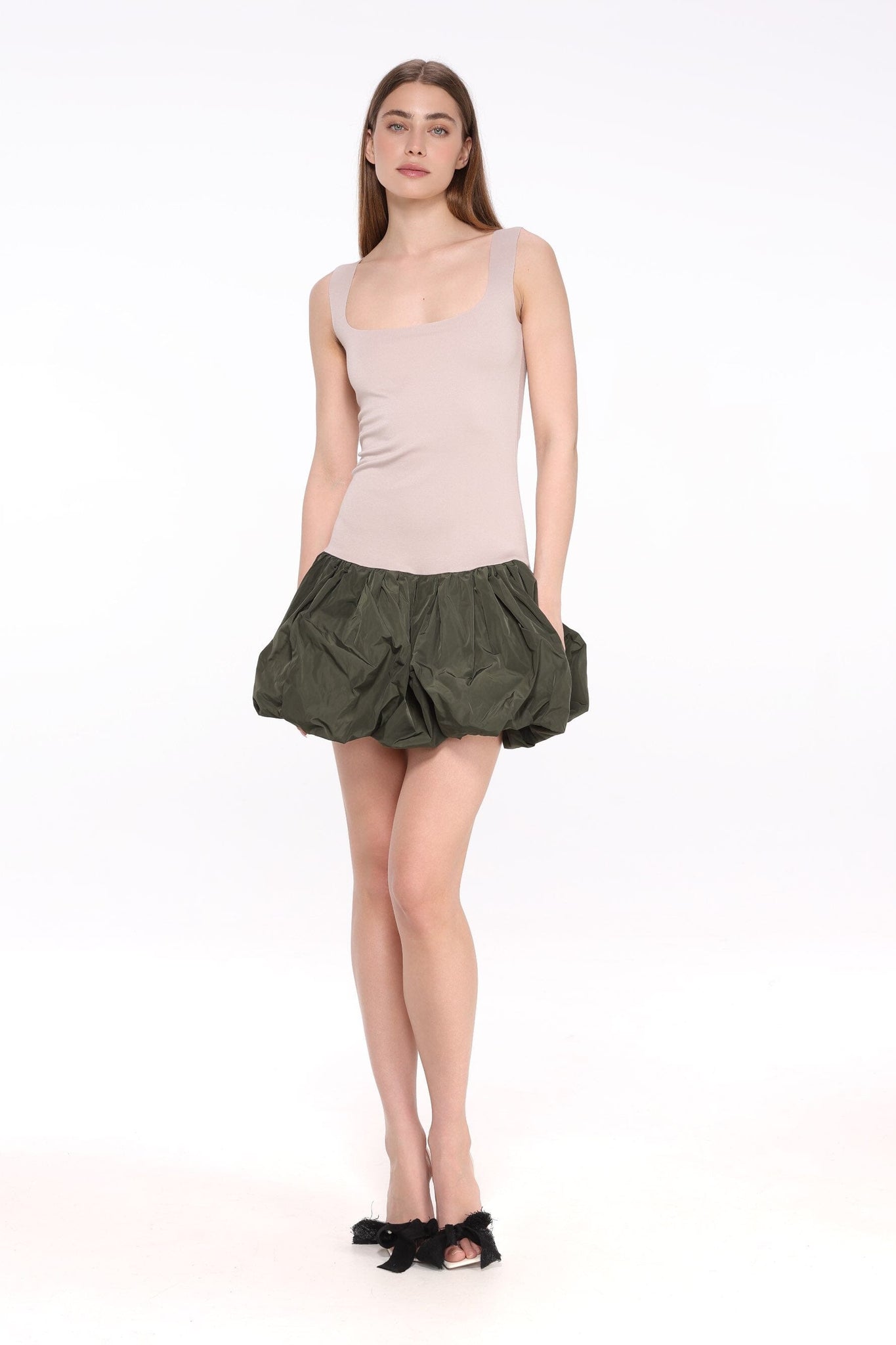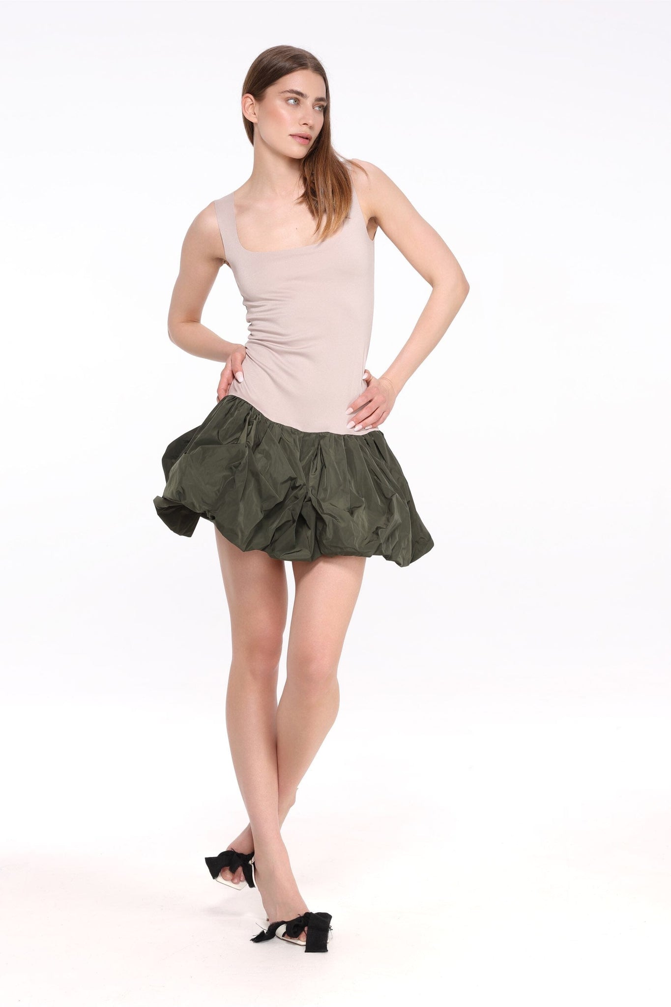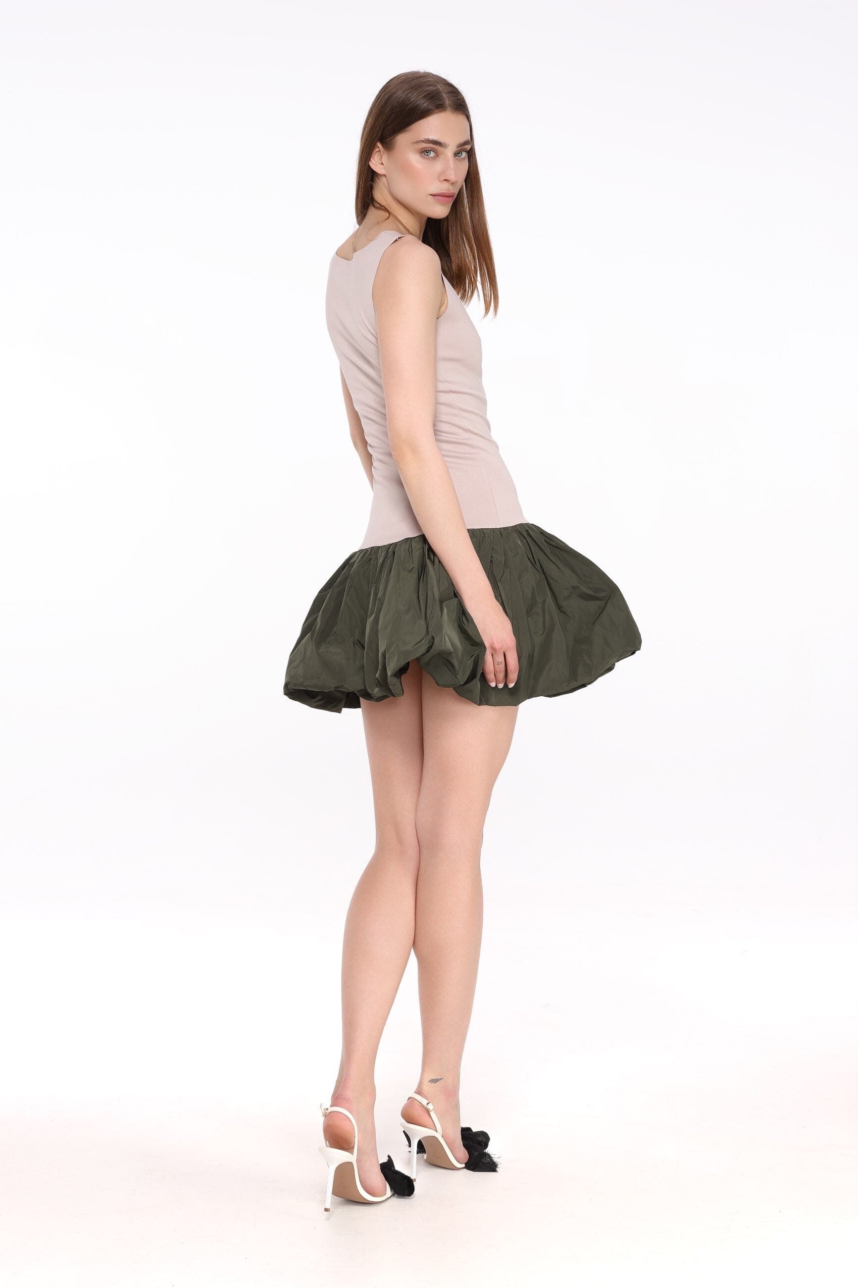 Delicate Refined Mini Dress apvieno eleganci ar klasisku stilu. Tai ir gluds, bezpiedurkņu dizains un skaisti veidots izgriezums, kas piešķir tērpam izsmalcinātību. Kleita maigi pāriet apjomīgākā siluetā, veidojot glaimojošu un sievišķīgu tēlu. Piemērota dažādiem notikumiem – no kokteiļvakariem līdz formāliem pasākumiem – šī kleita ir īsta garderobes pērle. Tās vienkāršās, bet iespaidīgās detaļas padara to par neaizvietojamu izvēli.