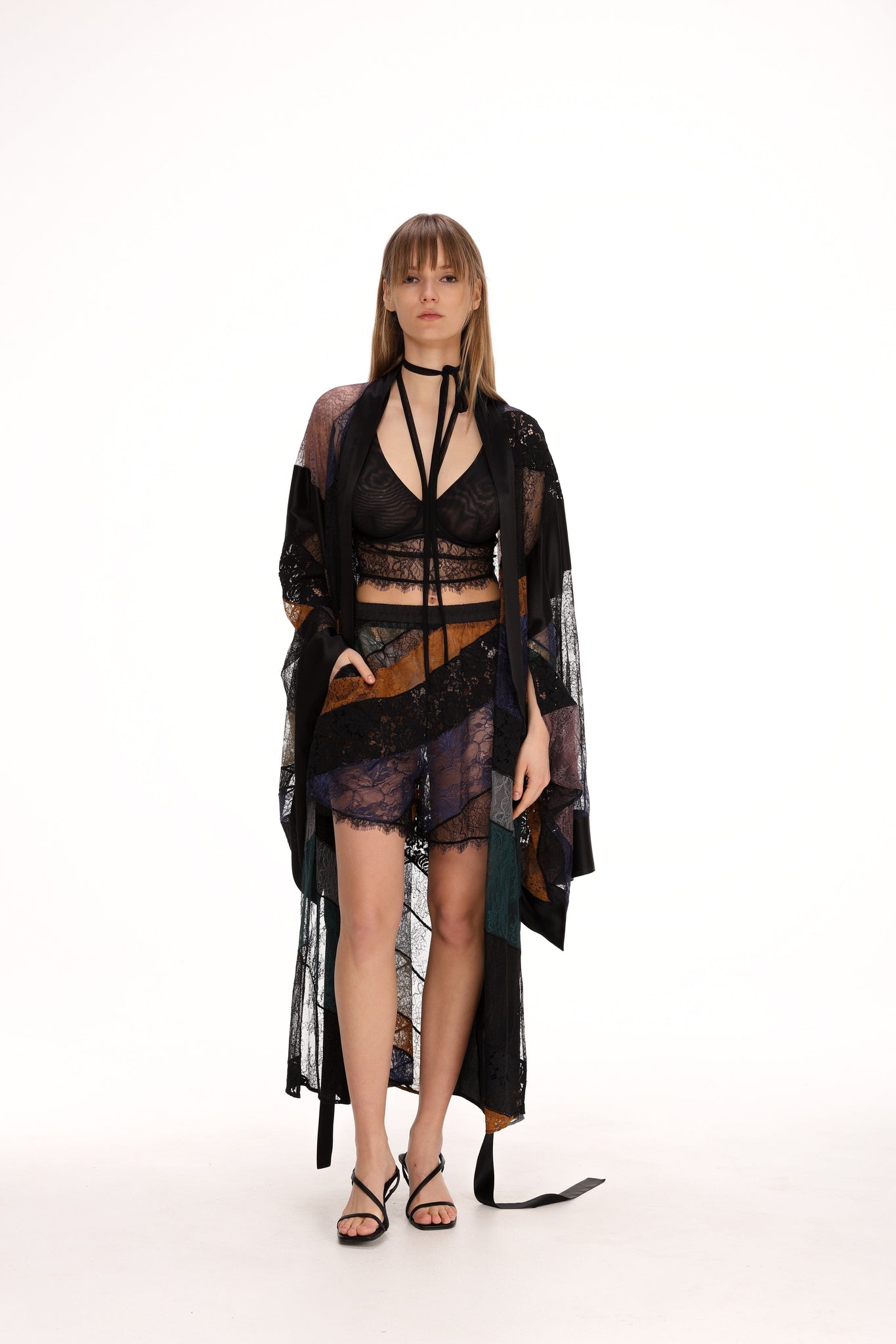 Bralete, kas veidota no smalkām mežģīnēm un izstaro delikātu šarmu. Maigais, sievišķīgais dizains, papildināts ar modernu akcentu ap kaklu, rada rotaļīgu, taču elegantu pievilcību. Tā eleganti veidotā konstrukcija izceļ gan komfortu, gan sievišķību, un ir ideāli piemērots tiem, kas novērtē atturīgu jutekliskumu.