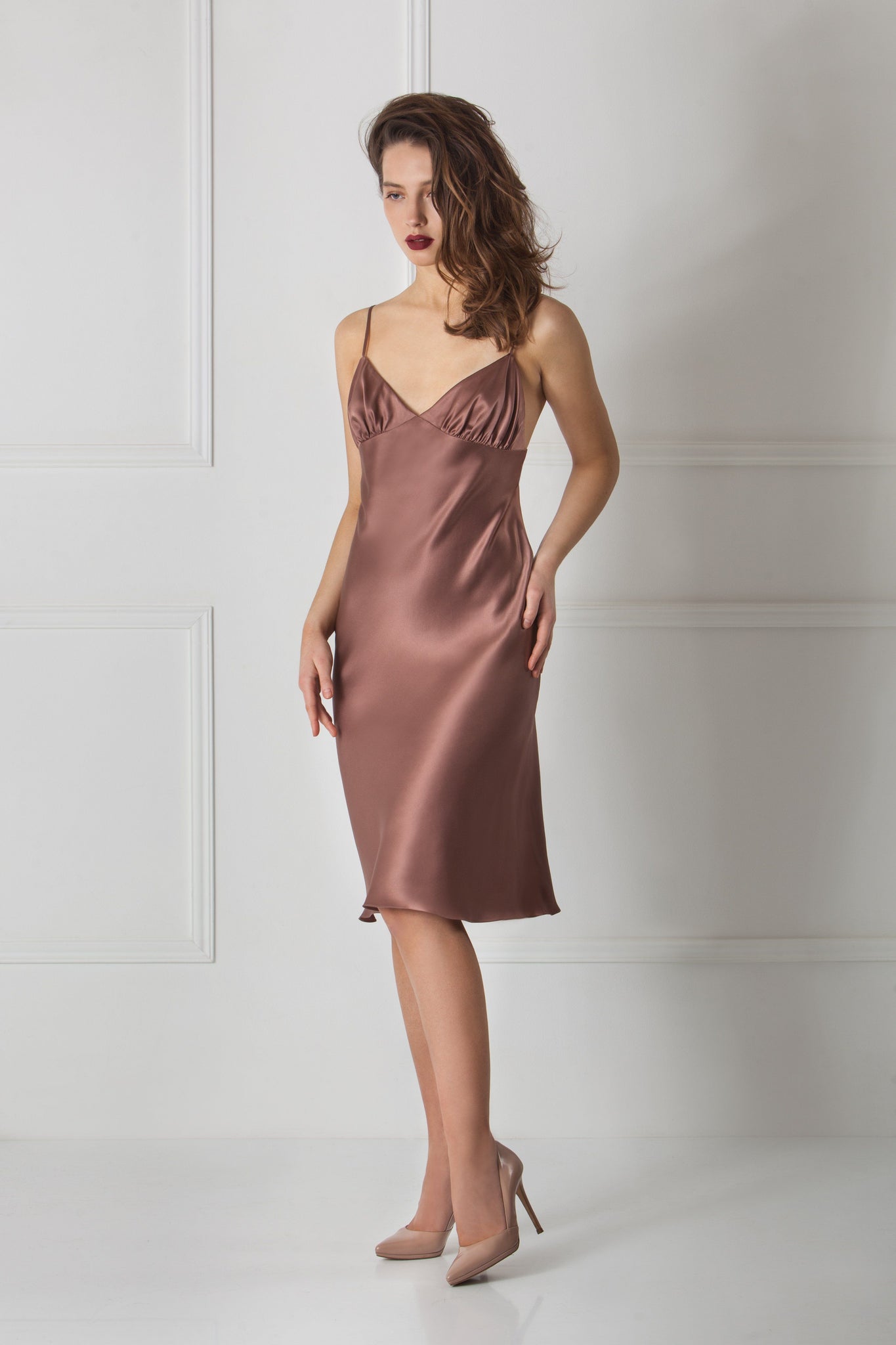 Greznā Amoralle zīda midi kleita ir juteklisks papildinājums sievišķīgai garderobei. Multifunkcionālā kleita izceļ valkātājas ķermeni. Apvienojiet to ar mežģīņu kimono, lai radītu elegantu vakara izskatu, vai valkājiet kopā ar zīda halātu mājas vidē.
