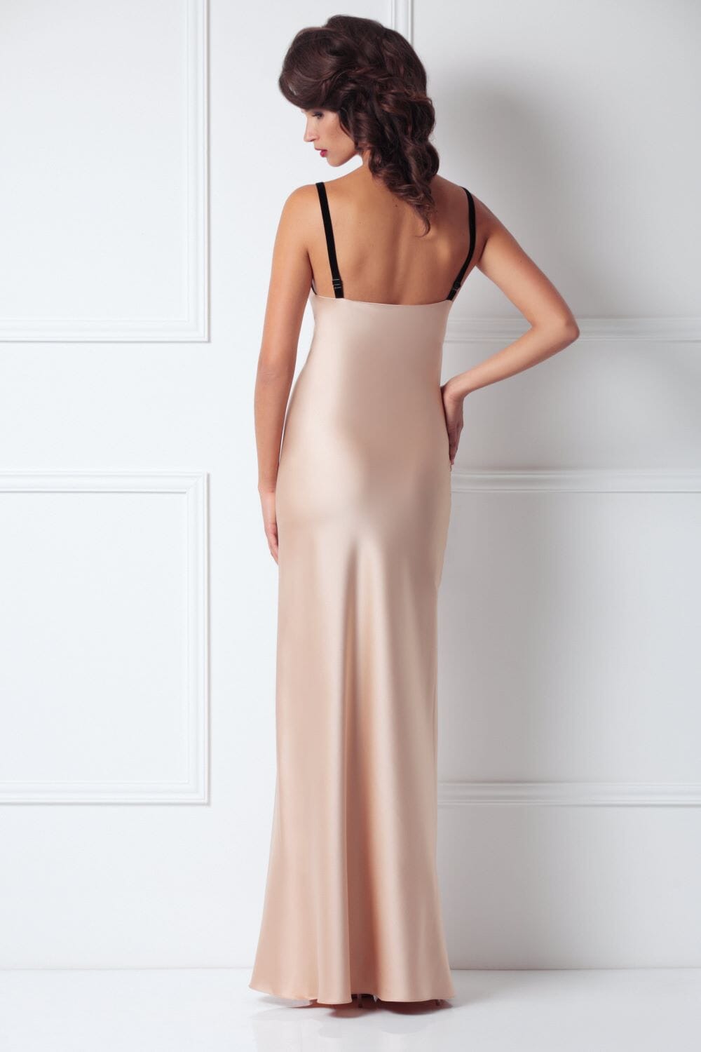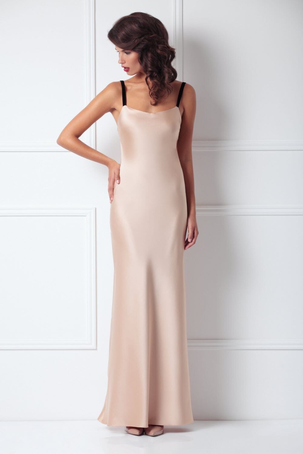 Satin maxi slip with velvet details. Slip can be worn to any occasion and they’re always so flattering.